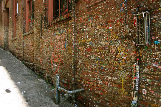 Το 1999 ο τοίχος με τις τσίχλες ανακηρύχτηκε επισήμως τουριστική ατραξιόν της πόλης του Σιάτλ. Σήμερα είναι καλυμμένος με χιλιάδες χρησιμοποιημένες τσίχλες. Υπάρχουν όλα τα χρώματα που μπορεί κανείς να φανταστεί, διάφορα σχήματα όπως καρδιές , καθώς επίσης και πολλά ονόματα σχηματισμένα με τσίχλα.